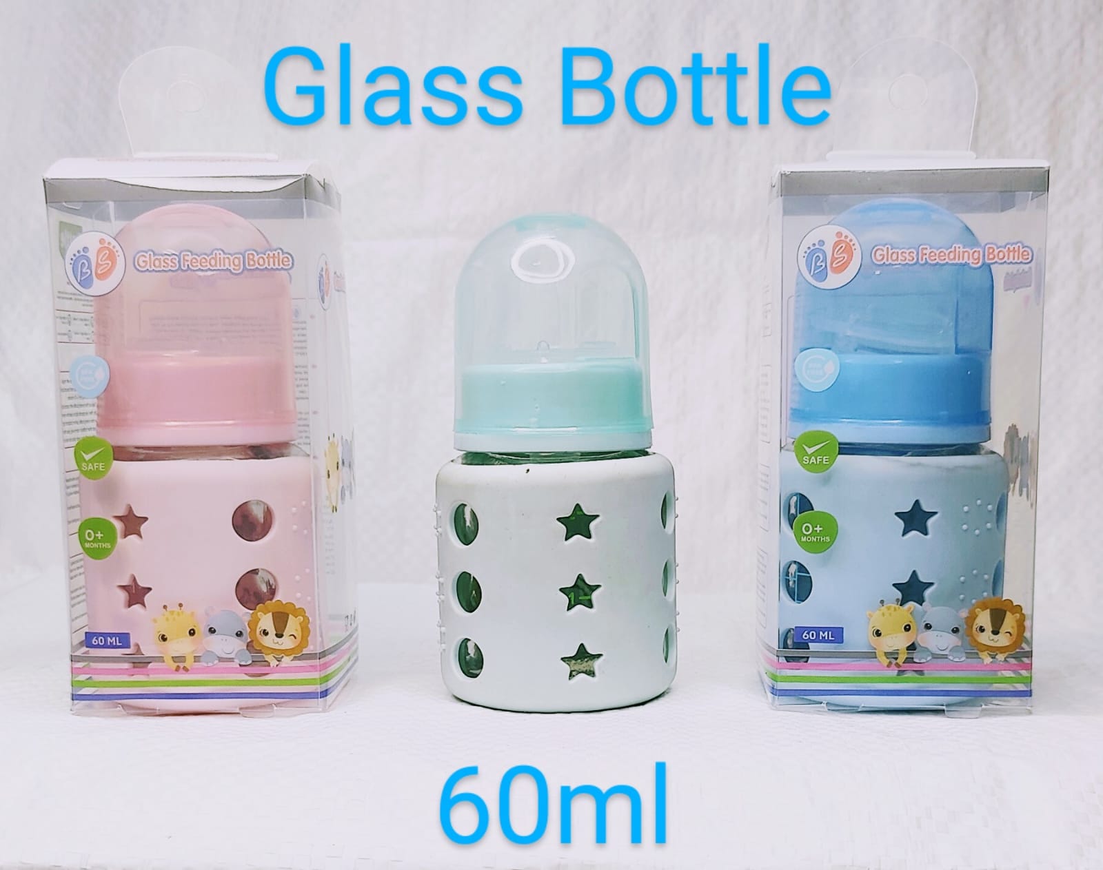 GLASS FEEDING BOTTLE WITH SILICONE COVER 60ML