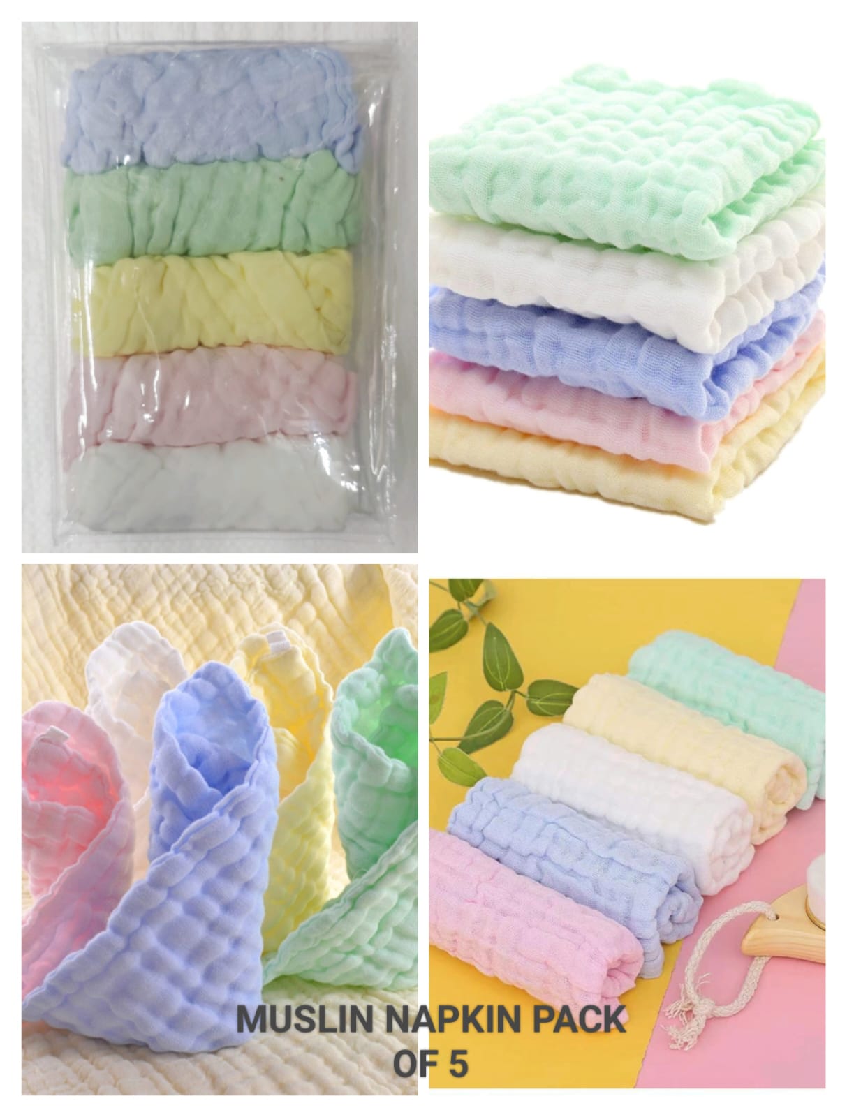 MUSLIN NAPKINS PLAIN COLOURS PACK OF 5